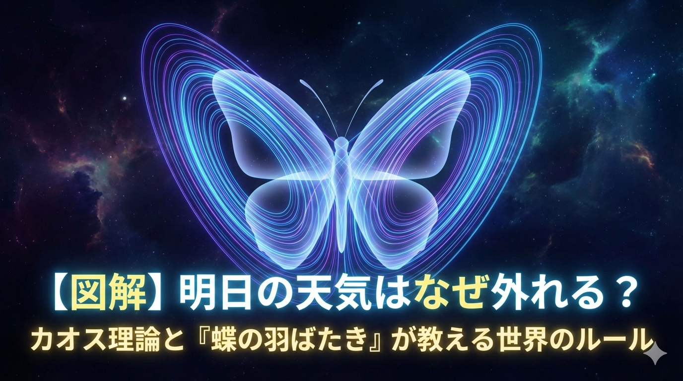 その答えは、数学と物理学の不思議な世界「カオス理論」に隠されています。今回は、カオス理論のシンボルである「ローレンツアトラクター」を入り口に、この世界の「予測不可なルール」を覗いてみましょう。